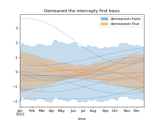 )Using a demeaned basis to remove “intercept” effect of first basis: